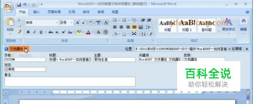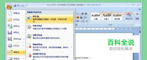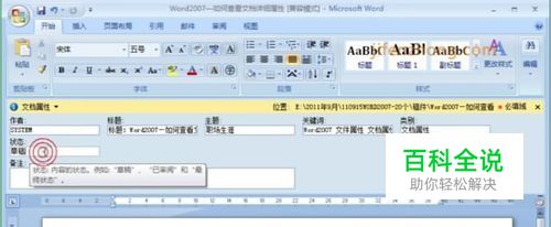 首先打开要查看属性的文档,依次点击左上角的“Office图标”—“准备”—“属性”,打开属性窗口,在这里,我们可以浏览该文档的部分信息,包括作者、标题、主题、关键词、状态和备注等,用户也可以自己修改这些信息。
