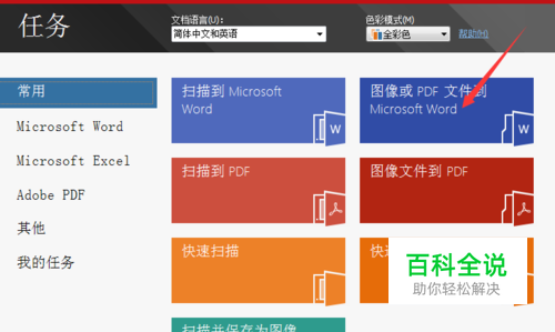 打开ABBYY FineReader 12,进入软件首页,在任务面板点击图像或PDF文件到Microsoft Word。