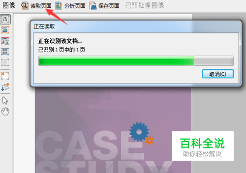 打开图像文件之后,在工作区点击‘读取页面’按钮,等待ABBYY FineReader 12识别文档。