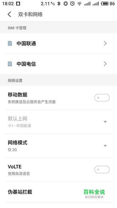 进入手机设置界面,在网络和连接中点击“双卡和网络”