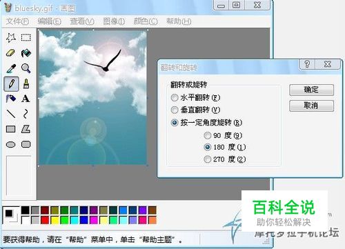 二.点图象-----翻转/旋转-----按一定角度旋转---选180度,把图片倒过来..因为我们要把上面的图截掉