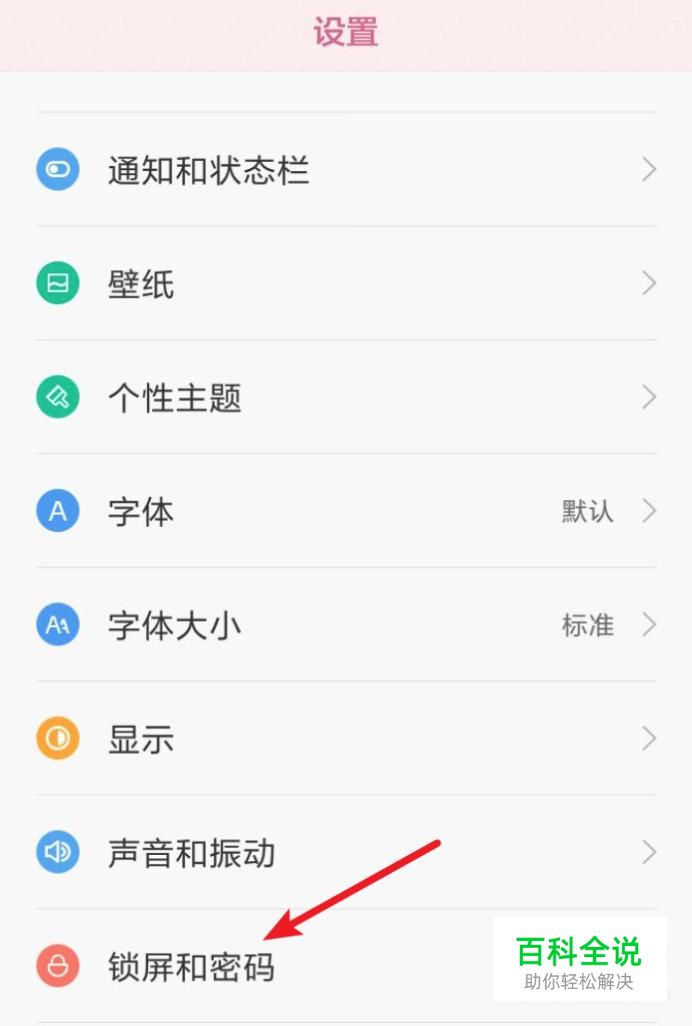 打开设置页面,点击‘锁屏和密码’