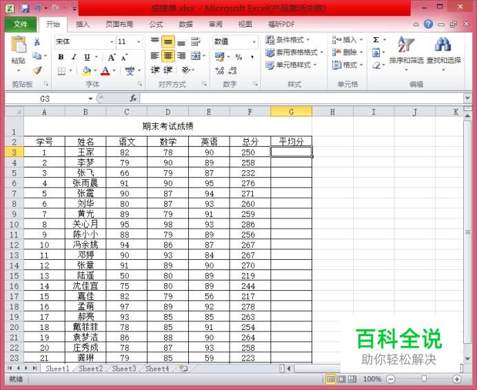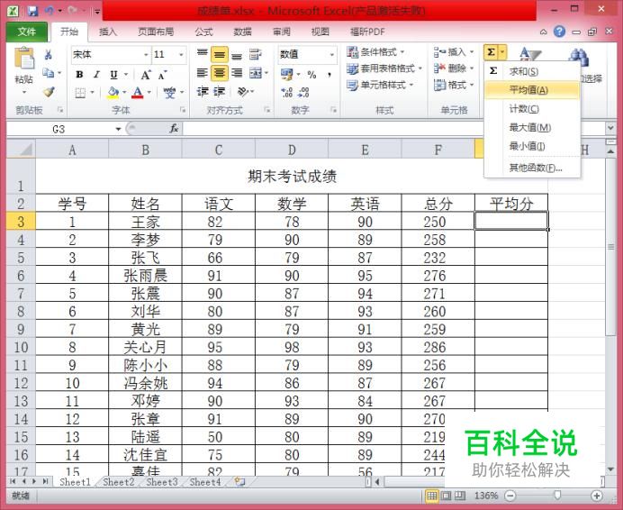 利用Excel自动计算平均成绩并排名次