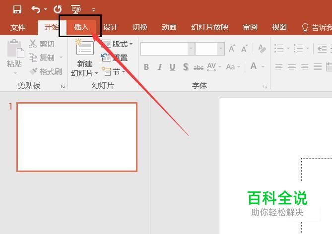 首先,我们打开PPT软件,点击软件主页面中的“插入”菜单选项。