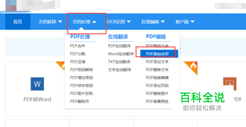之后会跳转到一个新的页面,会看到“点击选择文件”和“开始处理”将需要添加水印的PDF文件添加进去,