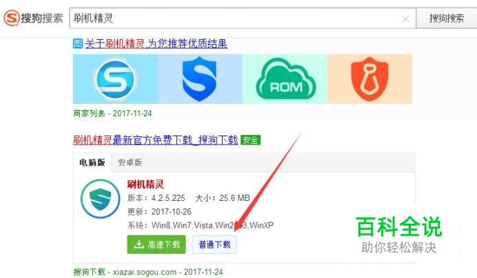 打开电脑浏览器,输入“刷机精灵”,下载安装到电脑。