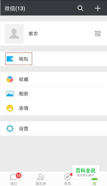 在微信个人页面,点击“钱包”。