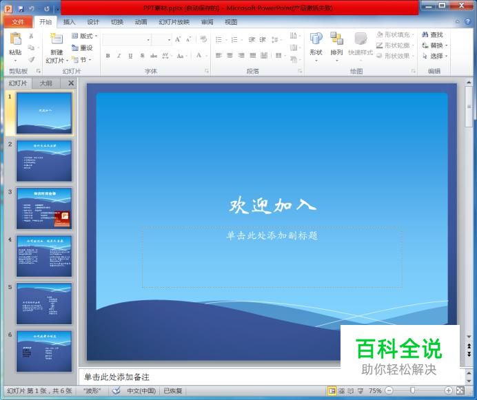 打开PPT2010,进入要编辑的文档。