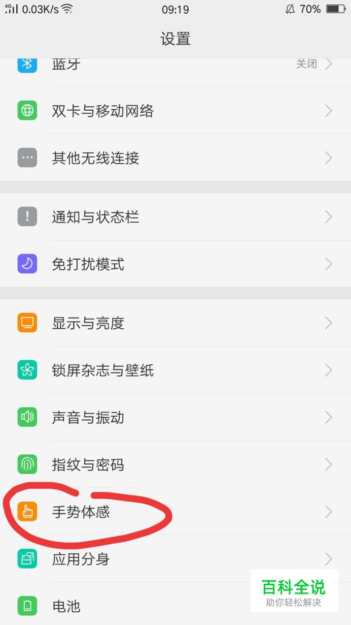 打开设置之后,滑动屏幕找到“手势体感”,点开