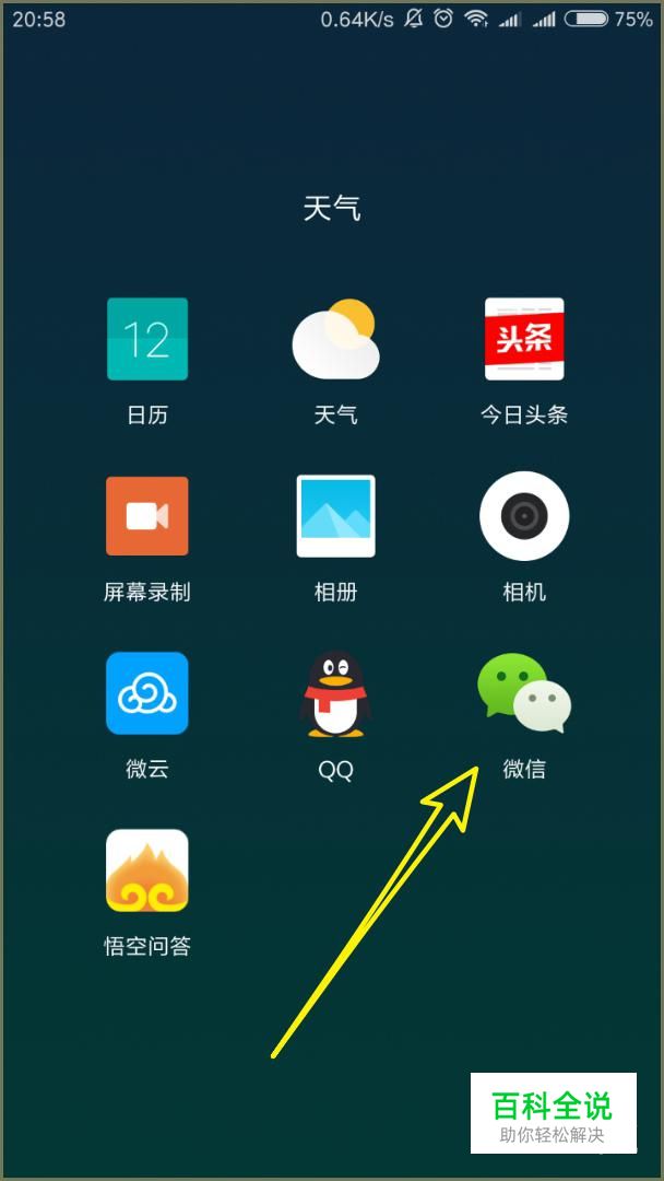 首先在手机中找到微信,打开微信!
