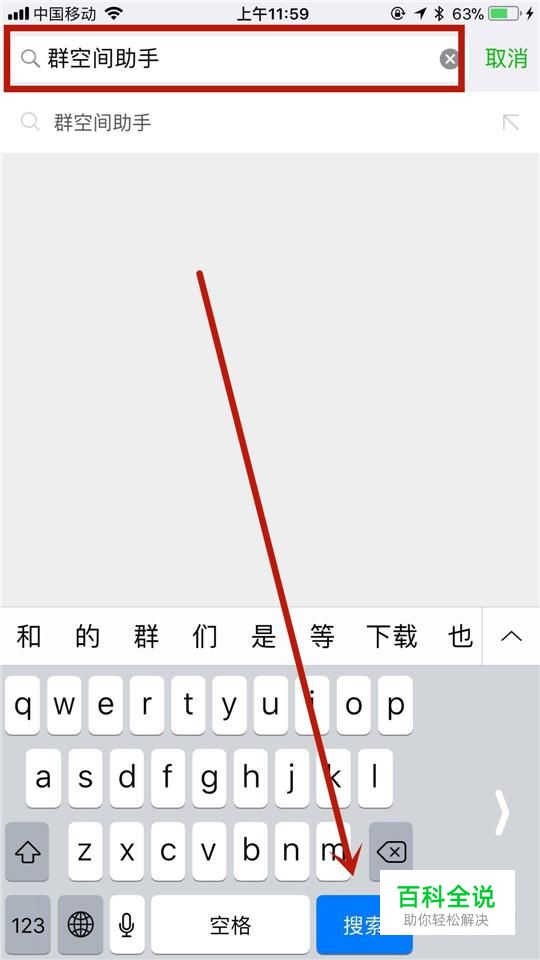 然后输入群空间助手并点击搜索,如下图所示。