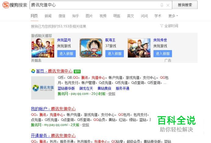 首先打开搜狗浏览器 搜索腾讯充值中心 然后进入官网