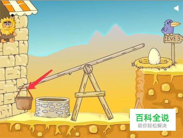 水桶掉下后,点击一下木杆。