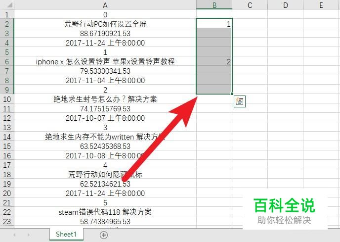 接着在隔行的数据标题相邻的的单元格输入序列2。