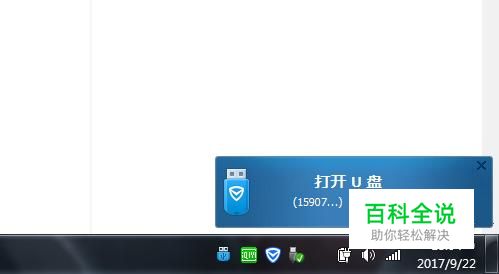 把U盘插进电脑USB接口,成功的话电脑右下角会弹出以下类似的图片。
