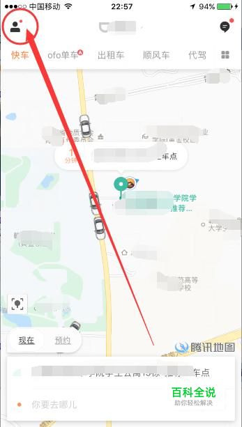 找到并点击进入了滴滴出行之后,我们的手机桌面就会进入到嘀嘀出行的主界面上,在滴滴出行主界面的左上角找到人形图标(如下图所示),找到之后点击进入。
