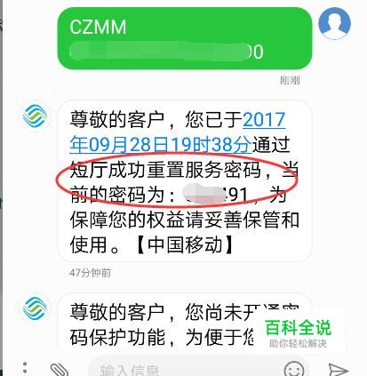 发送指令成功后即会收到反馈的短信,同时提示新的密码,这时就可以使用这个服务密码了。