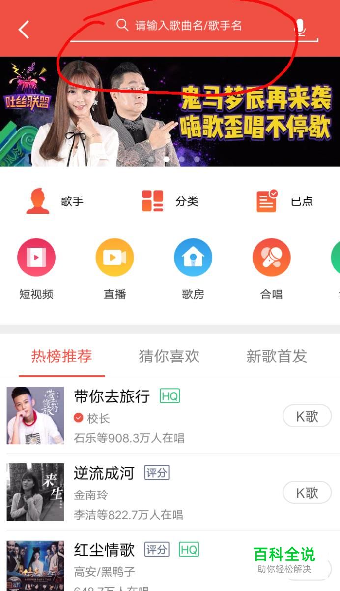 选择合唱有两种方式,这里我用一首歌做例子 第一种,进入App后,点击下面的唱歌图标