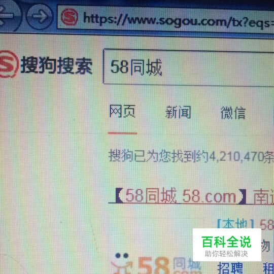 首先使用搜狗浏览器,输入关键字58同城