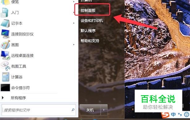 点击开始菜单上的‘控制面板’,