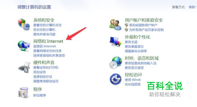 点击控制面板上的‘网络和Internet’
