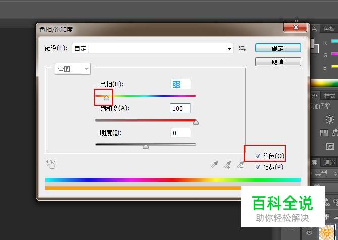 菜单栏:执行“图像”-“调整”-“色相/饱和度”命令,参数如下。