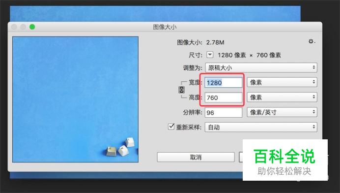 点击后,弹出窗口,可以看到我们图片的大小为 1280x760,算是很大的图片了。