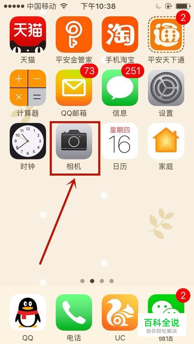首先在手机桌面上找到“相机”图标并点击它,如下图所示。