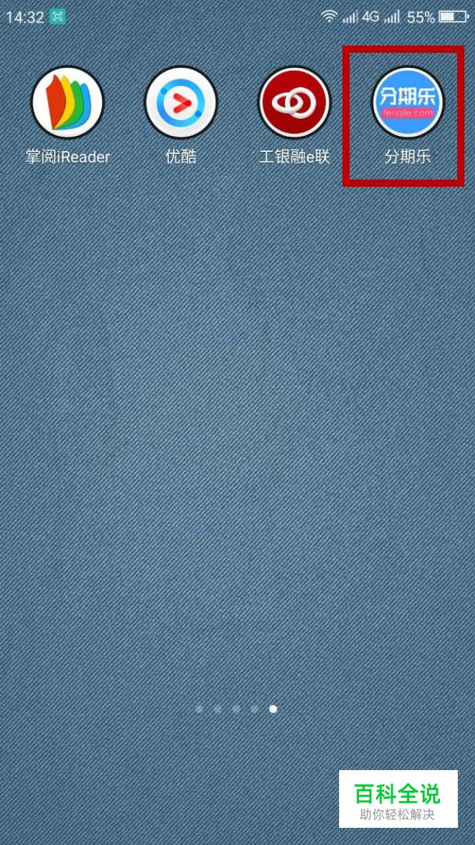 首先我们要在手机桌面里找到“分期乐”,点击打开,如图所示: