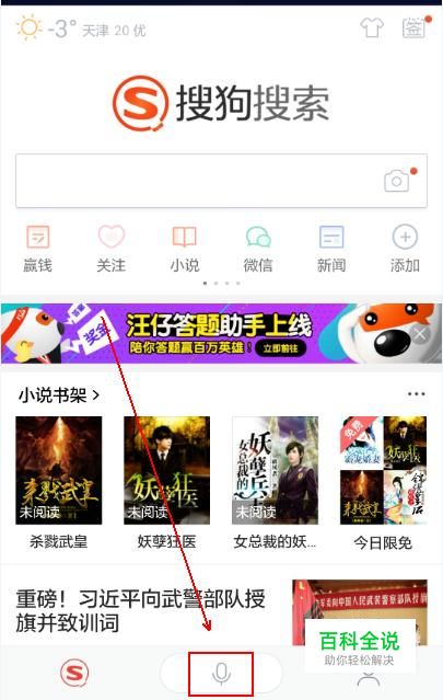 在搜狗搜索中按住下方的“话筒”标志并说出你的问题,快速搜索你想知道的答案吧!