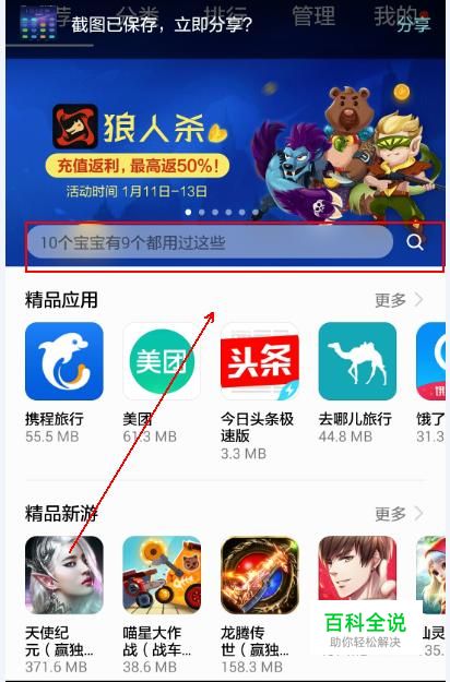 在“应用市场”的搜索栏上输入关键词“搜狗搜索”