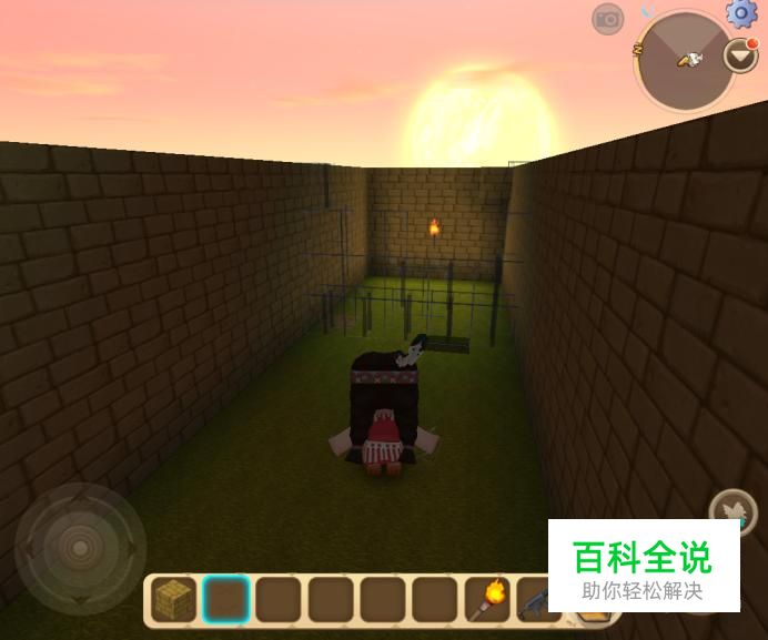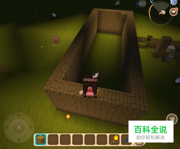 首先用方块建立这样的四面墙,注意墙的高度应是3层以上,否则怪物会跳出来。