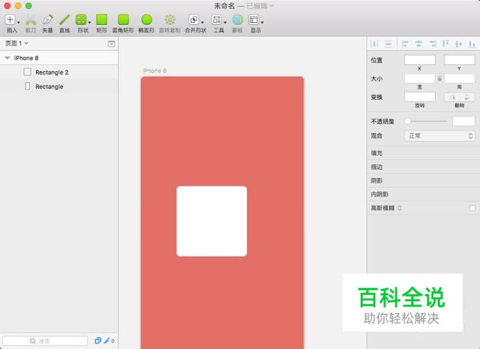 点选两个图形然后右键点击,选择“蒙版”,目的是将长方形置于底层图形中。