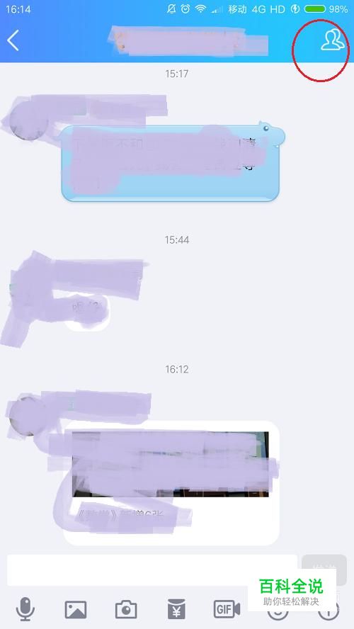 第一步,进入到你要发公告的那个QQ群的聊天界面,点击右上角的人形标志(如图所示)