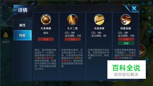 首先我们先来分析一下孙悟空的技能,他的技能几乎都是强化攻击的技能,可以说暴击伤害高,爆发能力强,但是生存堪忧。