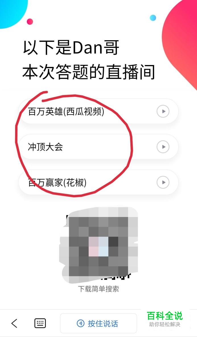 现在这个简单搜索支持西瓜视频的百万英雄、冲顶大会、花椒(百万赢家),想要参与哪个答题直播就选择哪个进入。