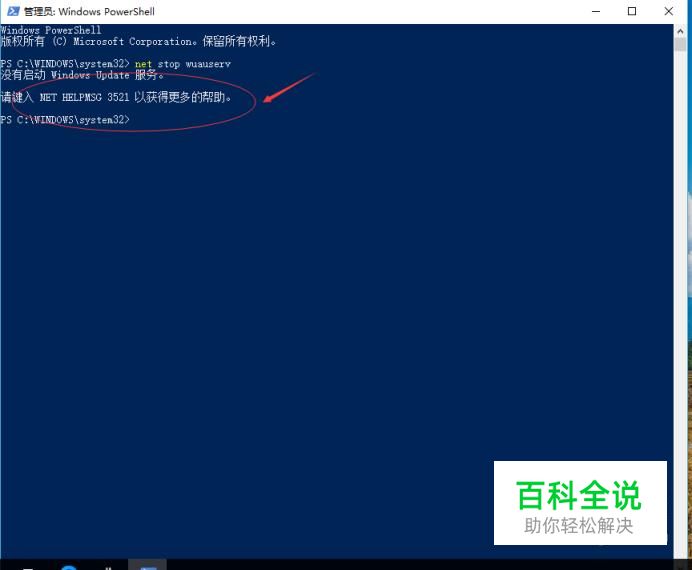 再次输入:net start wuauserv,回车(此处会提醒服务开启);