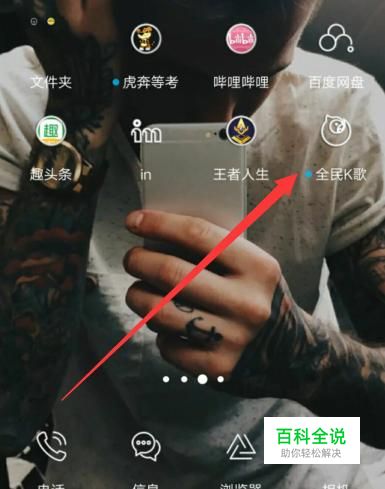 打开手机,找到全民K歌,点击并进入,如图所示。