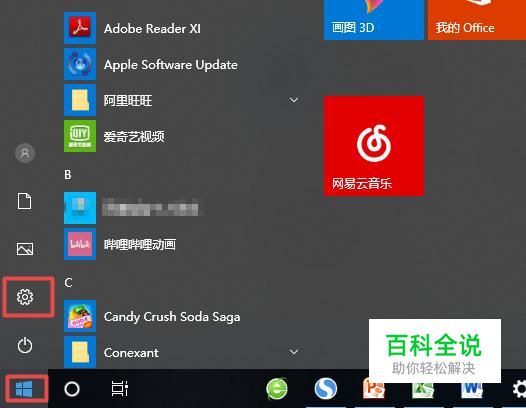 首先,电脑右下角出现电脑加红叉的话,那是因为我们的网络被我们禁用了,我们点击电脑桌面左下角的微软按钮,弹出的界面,我们点击设置;