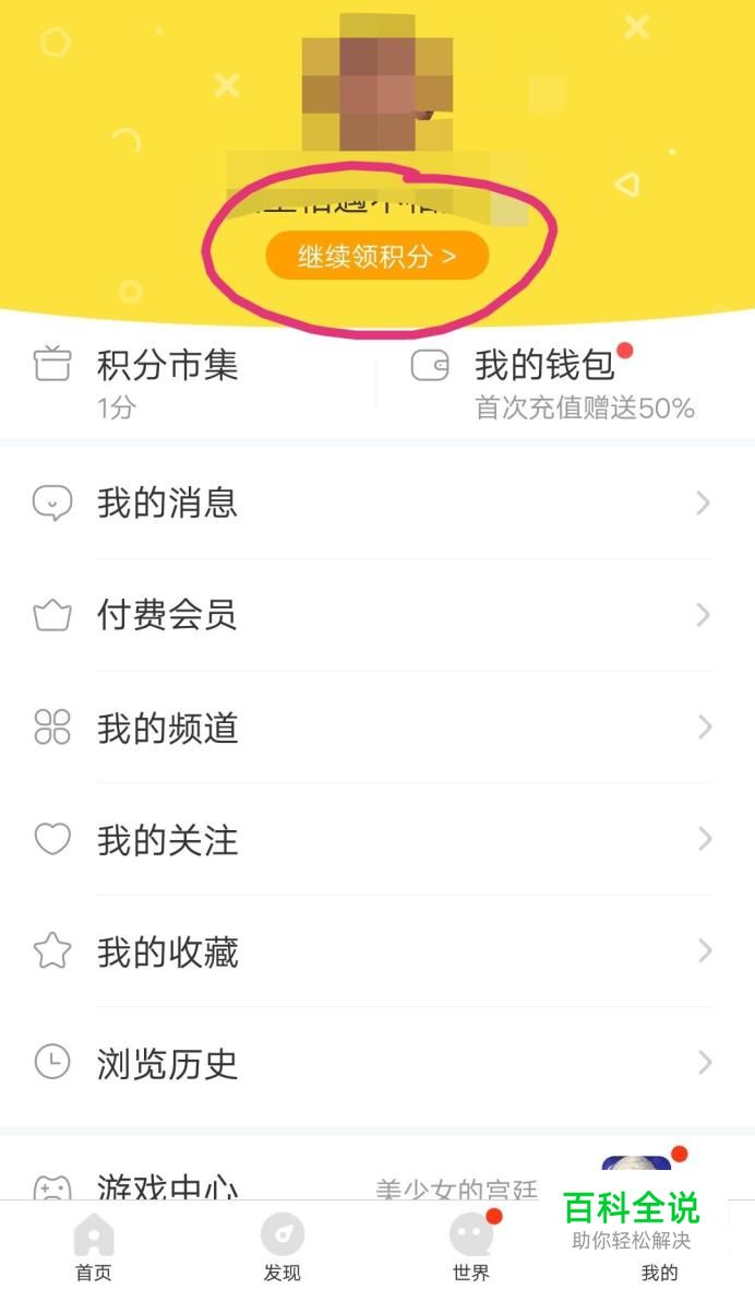 然后点击我的……继续领积分,如下图。