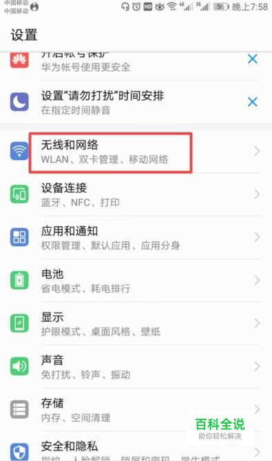 进入设置后,我们点击无线和网络;