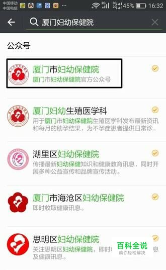 医院都有自己的微信公众号,病人可以在里面自主预约挂号,而且具体流程都差不多,这里以“厦门妇幼保健院”为例。首先打开手机微信,在公众号里面搜索“厦门妇幼保健院”并进行关注。