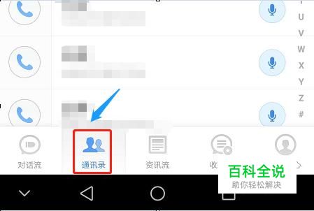 我们看到它和其他的通讯录管家工具界面上并无太大的区别,无非就是增加了资讯流而已,那么在功能上有何突破呢?这时我们就要切换到“通讯录”了,我们注意到每个联系人后面都有一个小话筒图标;