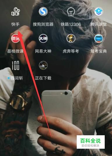 打开手机,找到快手,点击并进入,如图所示。