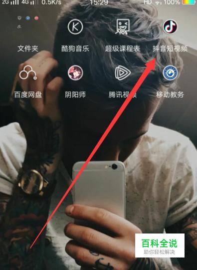 打开手机,找到抖音,点击并进入,如图所示。