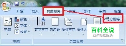 将光标移动到首页最后一个字的后面,在“页面布局”里面找到“分隔符”,点击。
