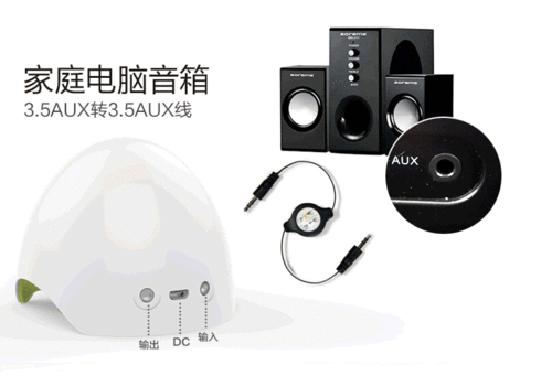 如果是家庭普通音箱,准备wifi音乐蛋 、mic USB线、3.5AUX转3.5AUX 、普通音箱。