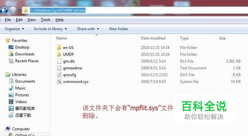 在C:\Windows\SysWOW64\drivers路径下找到“mpflit.sys”文件并将其删除。