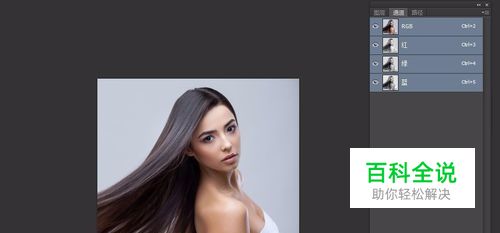 仔细看各个通道(红 蓝 绿) 通过对比,我们会发现,蓝色通道所显示的图像背景与人物对比比较明显,那么我们就选择蓝色通道进行操作.