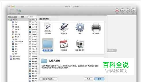 首先,在Mac上启动Automator,文稿类型选择“文件夹操作”,并在右侧顶部的目标文件夹中选择“其它”